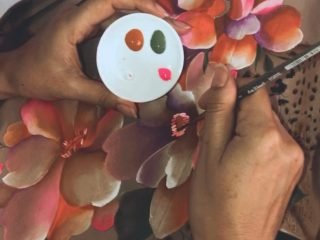 Pintura textil, con técnica mixta. Arte floral, y arte animal.