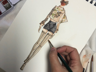 Arte textil cuyo lienzo es una gabardina, de lino, algodón y poliéster, con diseño en ilustración de acuarela único y exclusivo realizado todo por SOLO YOY.